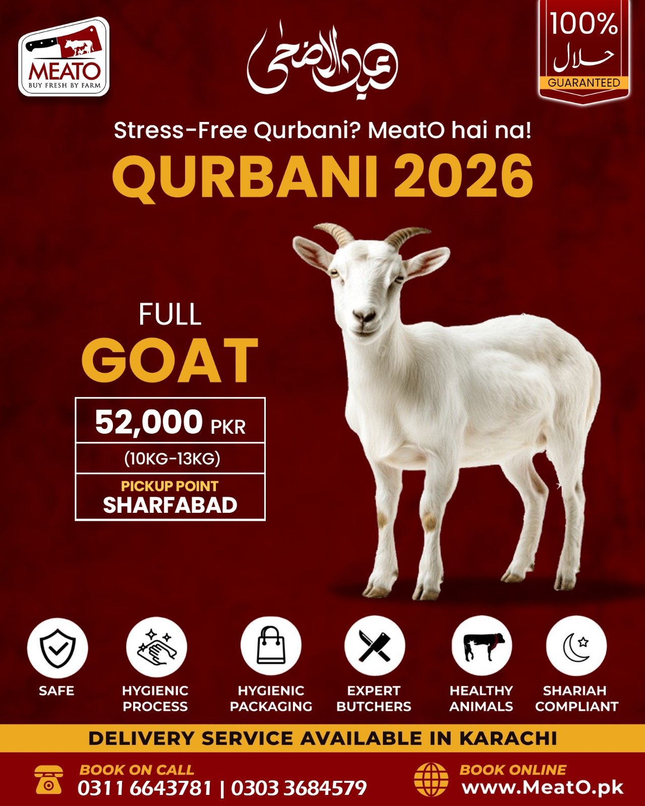 For a goat: Expected meat is 10–12 kg. Final weight will be determined